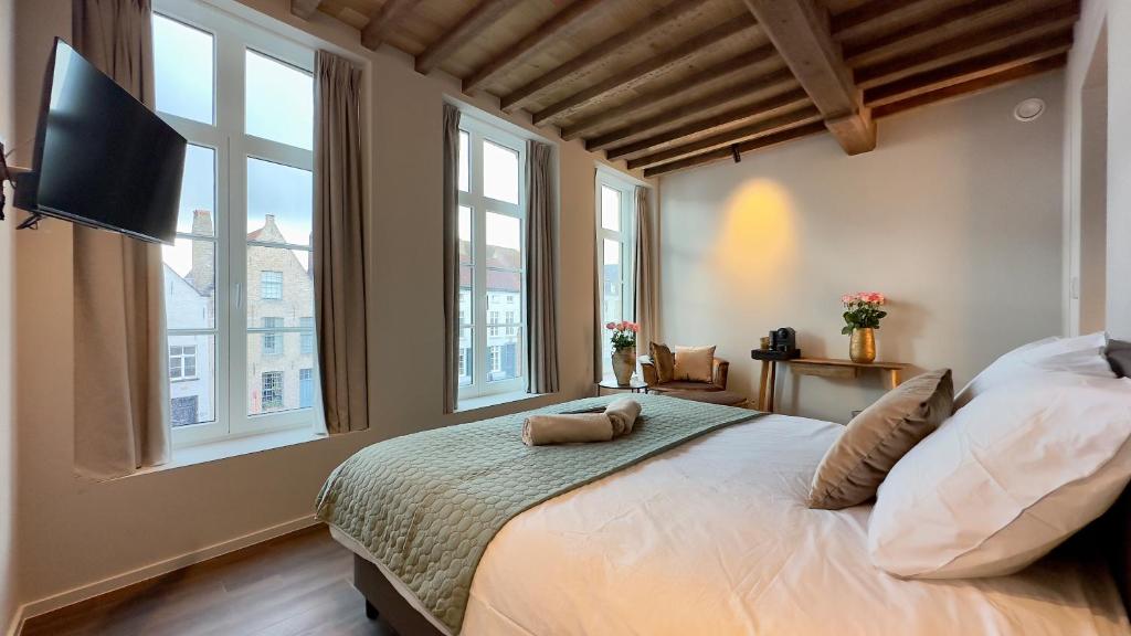 Jede Suite verfügt über ein einzigartiges Thema und eine individuelle Einrichtung, die verschiedene stilistische Einflüsse zu einer harmonischen, kunstvollen und zugleich ruhigen Ästhetik verschmelzen lassen, die an Brügge selbst erinnert. Trotz seines klassischen Ambientes bietet das B&B; allen zeitgemäßen Komfort und verbindet historischen Charme mit modernem Luxus auf nahtlose und einladende Weise.