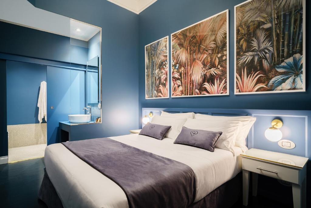 Jede Suite ist ein Unikat, geprägt von der historischen Struktur des Gebäudes. Die Gäste erleben eine beeindruckende Mischung aus Alt und Neu – antikes Mauerwerk neben modernem Beton und originale Holzbalken über zeitgenössischen Hartholzböden –, die in jedem Zimmer ein vielschichtiges, einzigartiges Ambiente schafft.