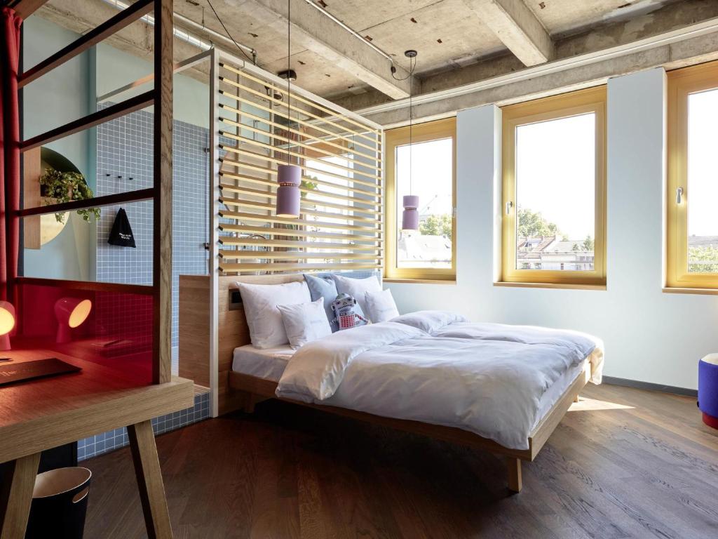 Das von Werner Aisslinger entworfene Hotel verkörpert eine retro-futuristische, spätmoderne westdeutsche Ästhetik mit Pastelltönen und abgerundeten Formen. Die Zimmer reichen von „Medium“ bis „Gigantic“ und sind alle mit Regenduschen, Bluetooth-Lautsprechern und Smart-TVs ausgestattet, wodurch nostalgischer Charme mit modernem Komfort verschmilzt, um die Reisenden von heute zu begeistern.