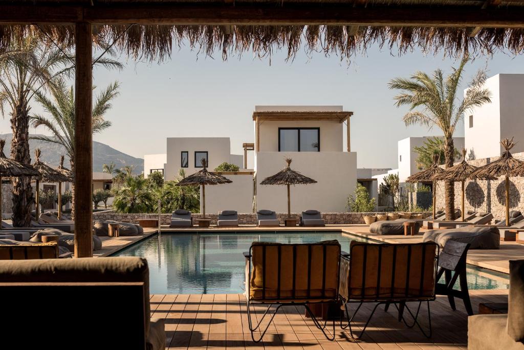 Im Inneren verbindet es modernen Komfort mit Art-déco-Stil. Mit nur acht Zimmern wirkt es exklusiv und dennoch einladend. Die Gäste genießen von den Zimmern und Suiten aus einen atemberaubenden Blick auf die Ägäis sowie einen Strandclub direkt am Meer.