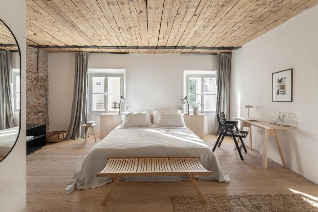 Das Hotel ist mit natürlichen Materialien in sanften Holz-, Leinen- und Wolltönen eingerichtet und lädt die Gäste dazu ein, sich zu entspannen, ein Buch auszuleihen, Yoga zu praktizieren oder im ruhigen Garten ein Glas Wein zu genießen. Hier lebt die Geschichte in jedem Detail, vom mit Fresken verzierten Speisesaal bis zum friedlichen Innenhof, in dem die Zeit stillzustehen scheint.